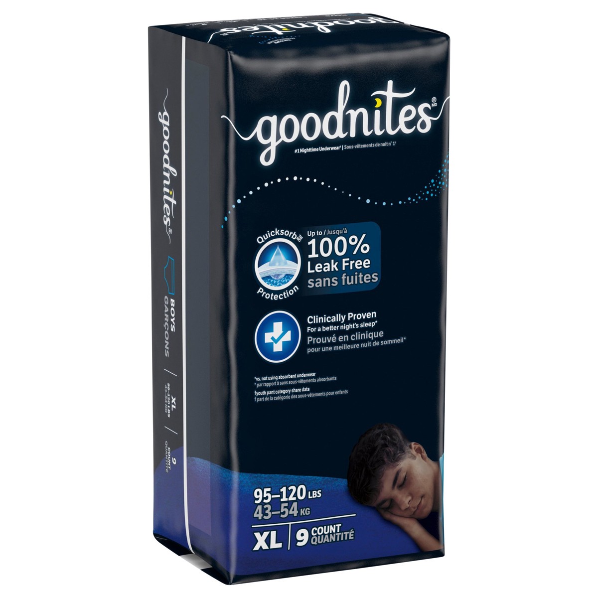 Help your kids wake up dry with Goodnites Nighttime Underwear, the #1 nighttime underwear,* now available in a new XXL size! These nighttime underwear are made with Quicksorb Protection for up to 100%…