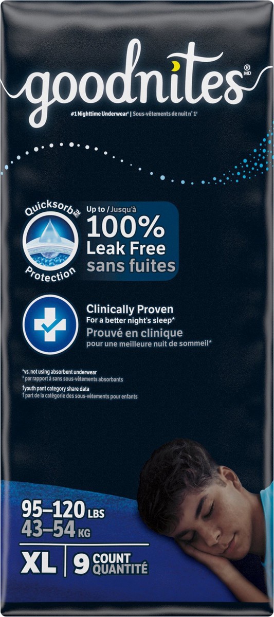 Goodnites Boys' Nighttime Bedwetting Underwear Size Extra Large (95-140+ Lbs) - 9 Count
