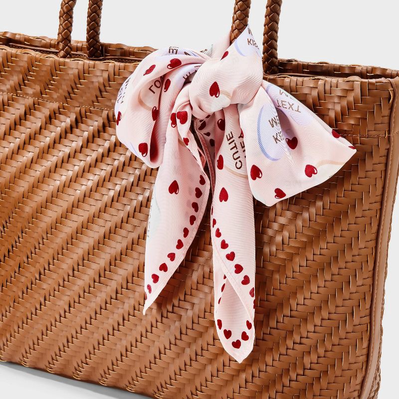 Add a sweet touch to your accessory collection with this Candy Heart Print Scarf from A New Day™. This blush pink scarf is adorned with multicolor pastel hearts that feature assorted fun text, includi…