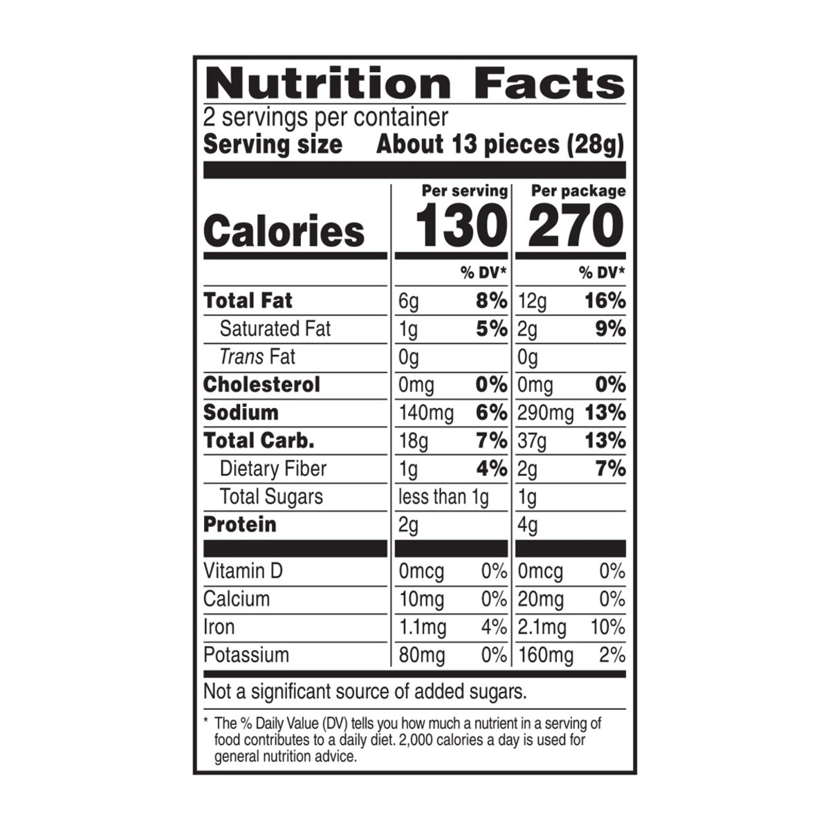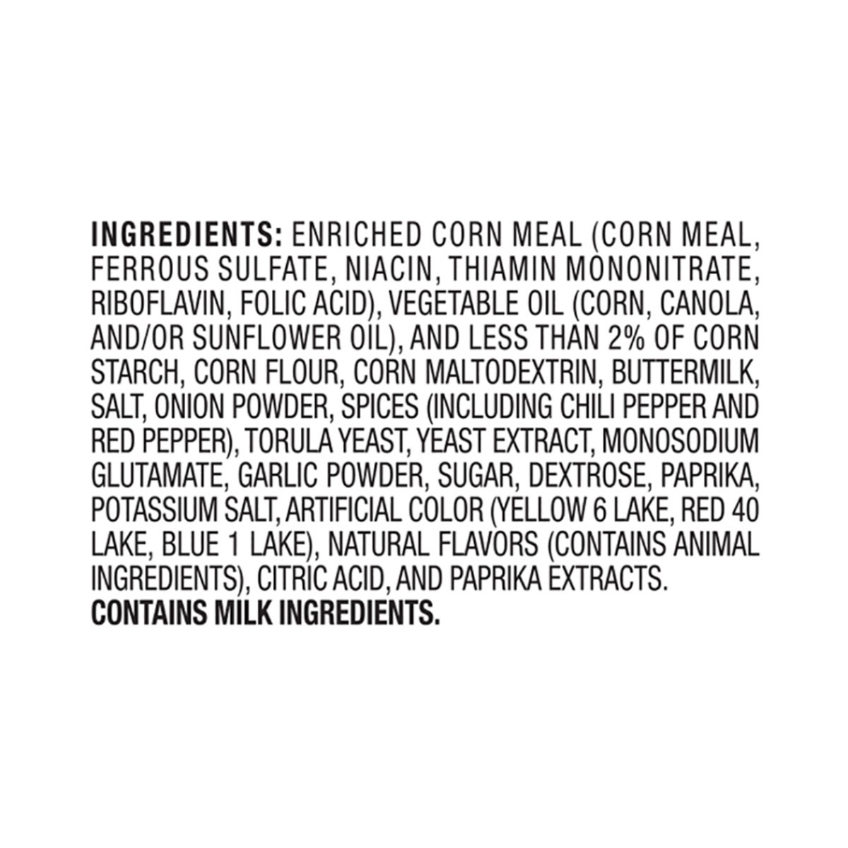 Enriched Corn Meal (Corn Meal, Ferrous Sulfate, Niacin, Thiamin Mononitrate, Riboflavin, Folic Acid), Vegetable Oil (Corn, Canola, And/Or Sunflower Oil), And Less Than 2% Of Corn Starch, Corn Flour, C…