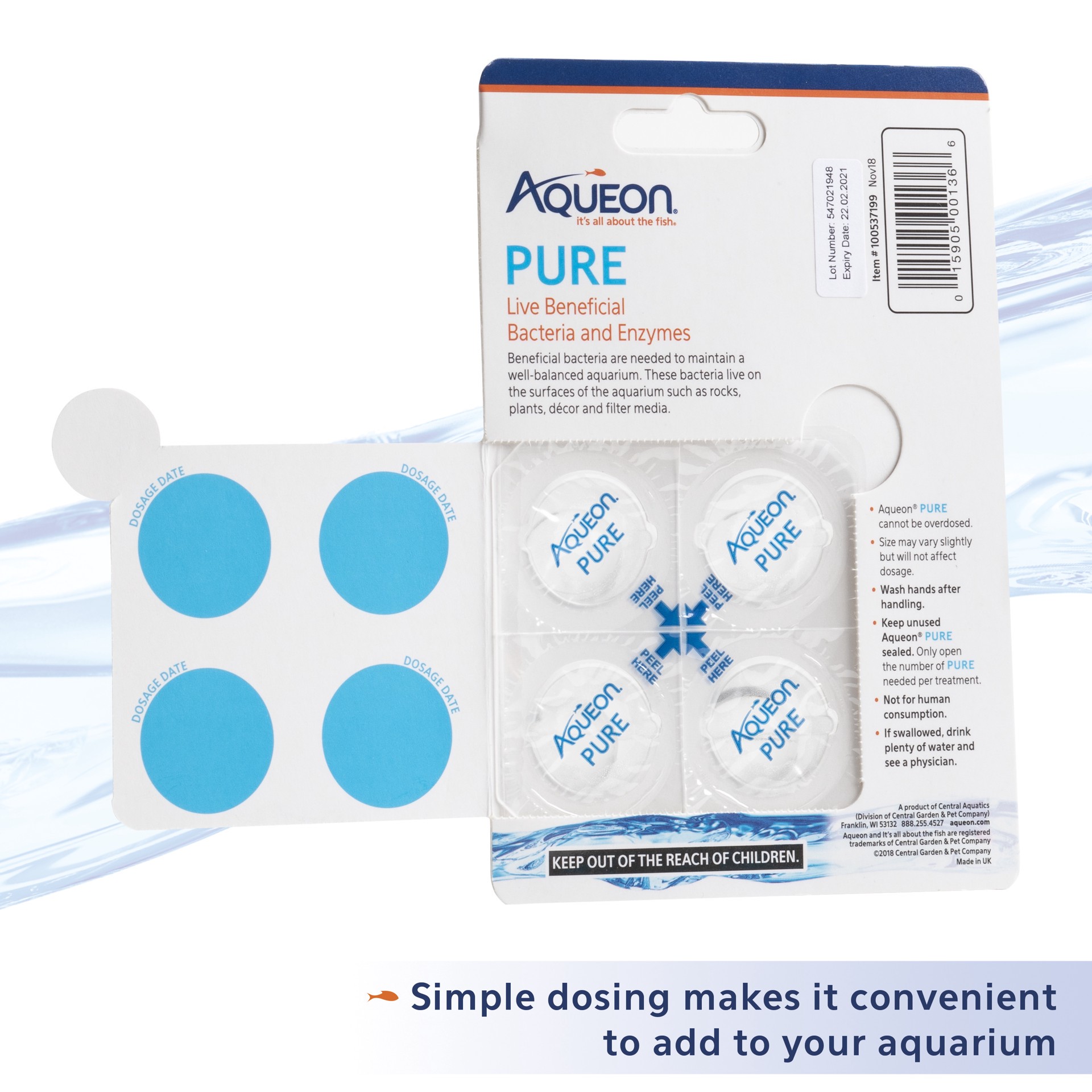 Aqueon PURE is nitrifying live bacteria that helps to maintain a well-balanced aquarium and is easy to dose. Nitrifying bacteria live on surfaces such as filter media, décor and gravel, converting har…