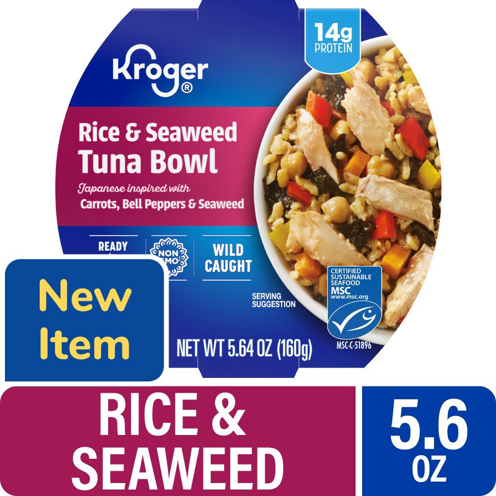 Kroger® Rice & Seaweed Tuna Bowl delivers Japanese-inspired flavor in every bite. Savor wild-caught skipjack Tuna, delicately paired with tangy carrots and vibrant red and yellow bell peppers. Contain…
