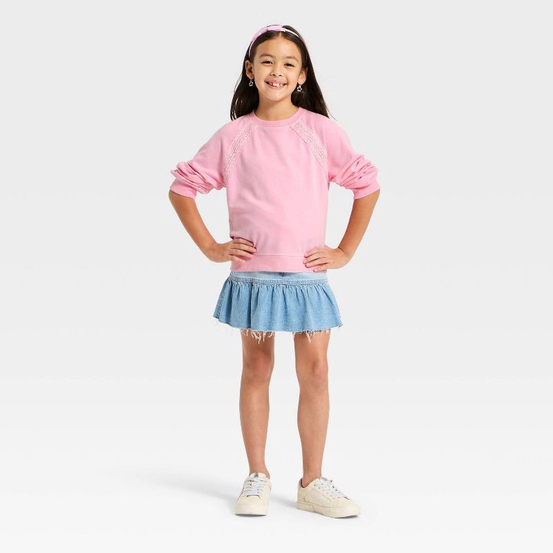 Girls' Lace Trim French Terry Pullover Sweatshirt - Cat & Jack™ Pink L