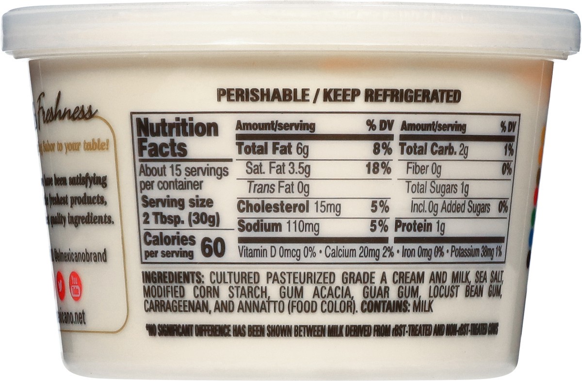 Cultured Pasteurized Grade A Cream and Milk, Sea Salt, Modified Corn Starch, Gum Acacia, Guar Gum, Locust Bean Gum, Carrageenan, and Annatto (Food Color).