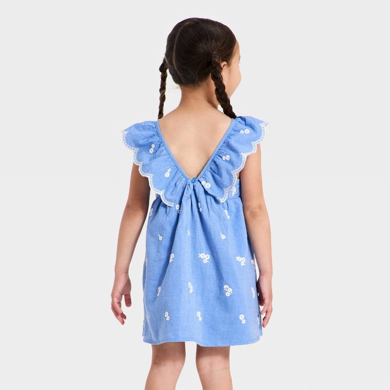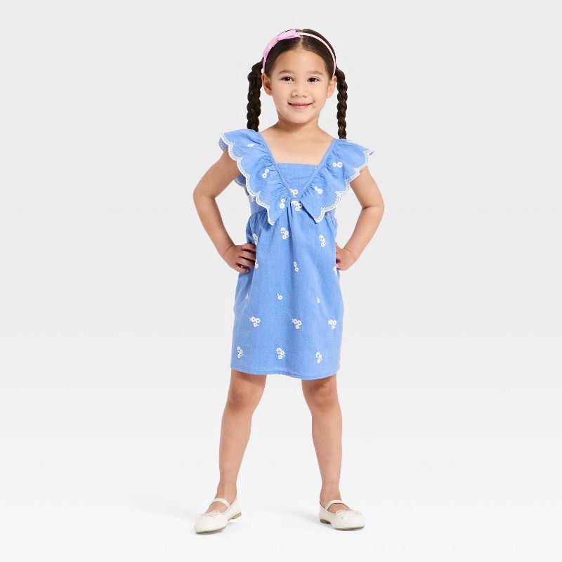 Brighten up your little one's wardrobe with this Chambray Embroidered Flowers Woven Dress from Cat & Jack™. Made of 100% cotton fabric and lining for all-day comfort, this chambray dress features allo…
