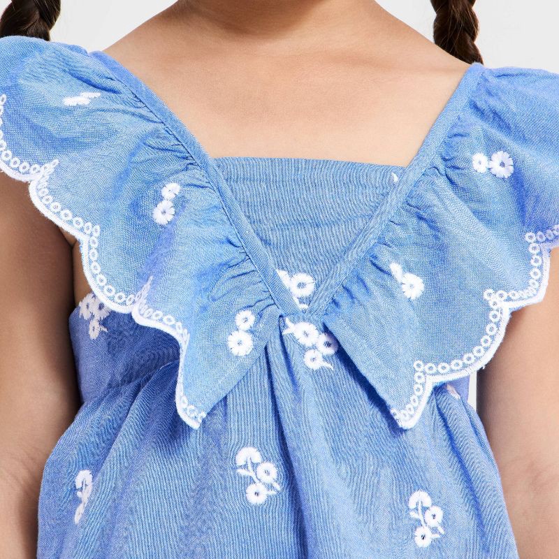 Toddler Girls' Chambray Embroidered Flowers Woven Dress - Cat & Jack™ Blue 4T