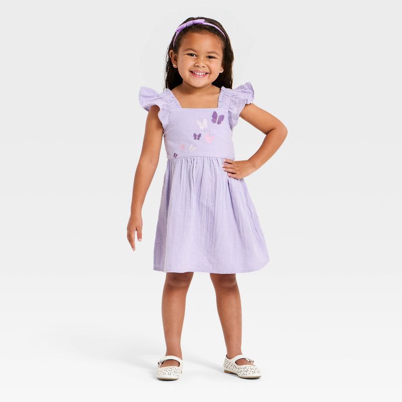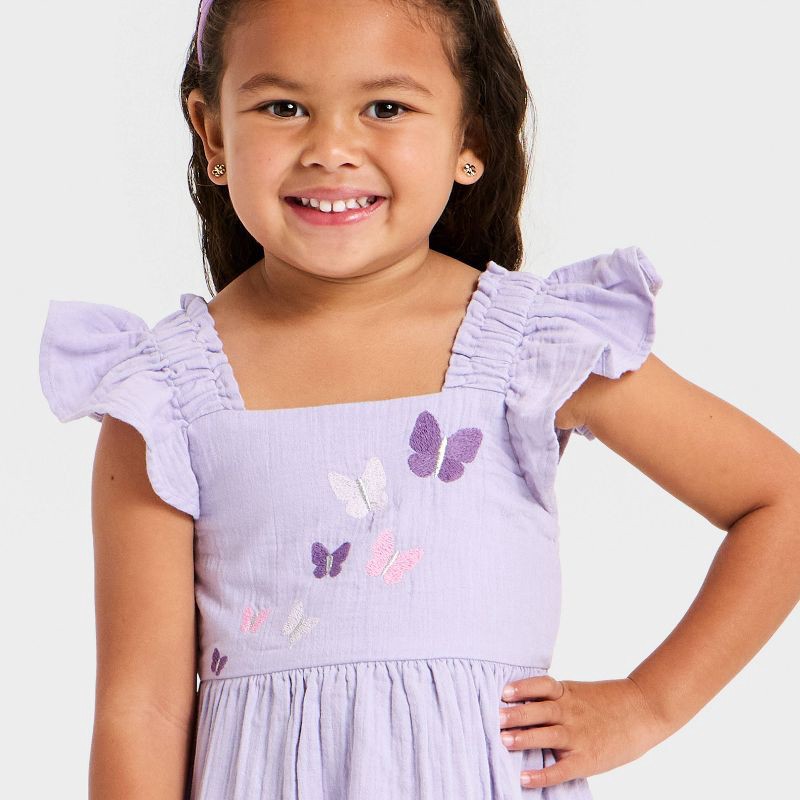 Toddler Girls' Butterfly Embroidered Woven Gauze Dress - Cat & Jack™ Purple 12M