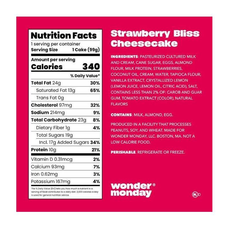 Wonder Monday Strawberry Bliss Cheesecake - 3.5oz