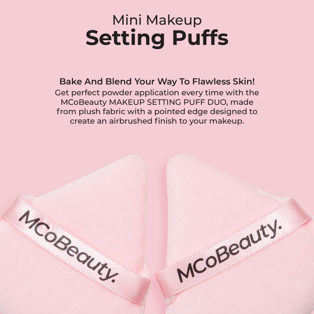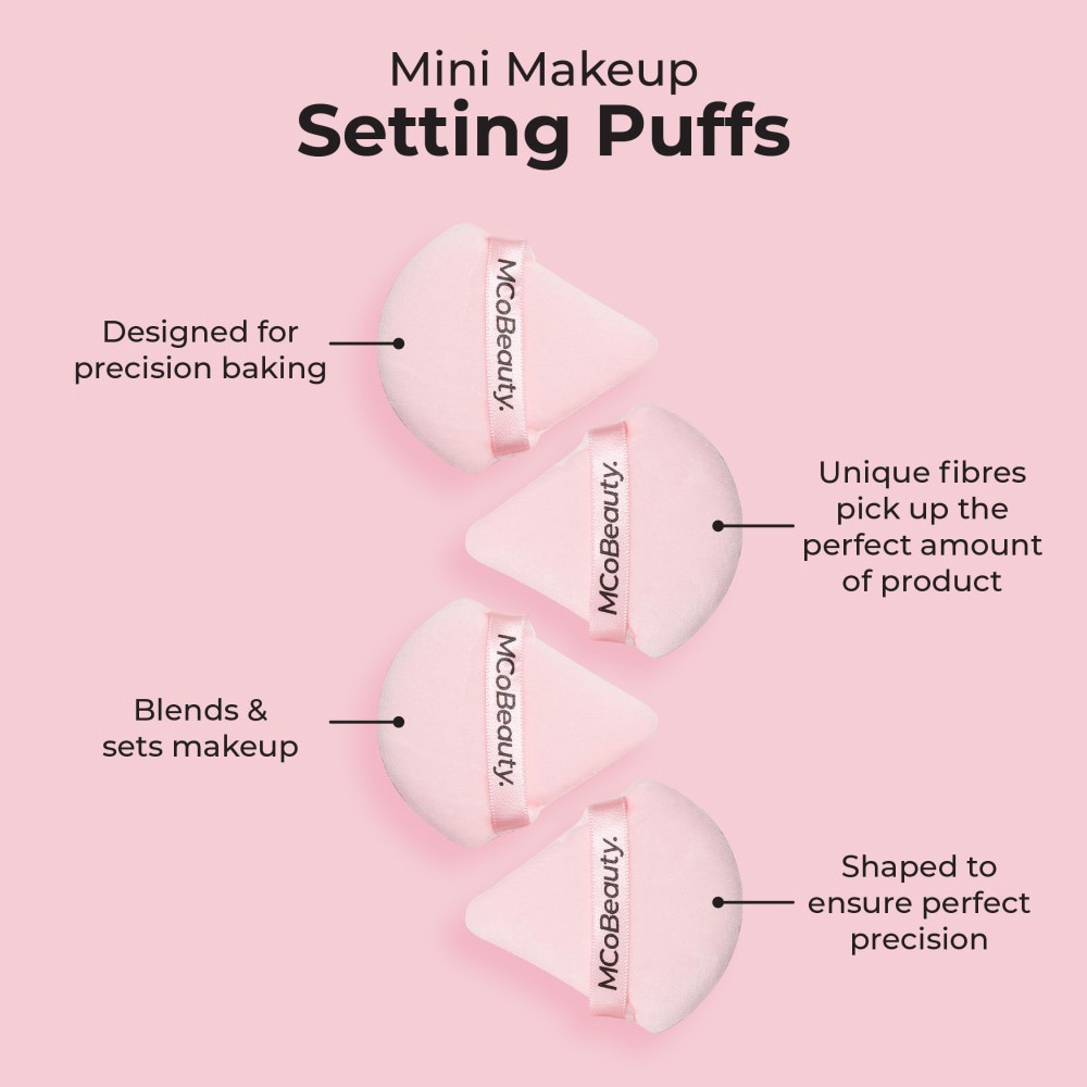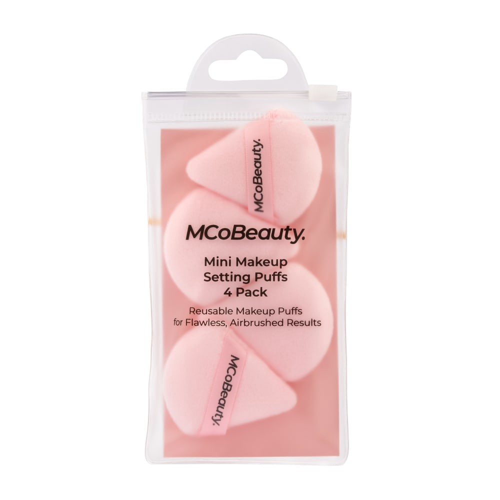 The MCoBeauty MINI MAKEUP SETTING PUFFS 4 PACK provide perfect powder application every time, in micro form! Featuring the same plush fabric and iconic shape as the classic Setting Puffs, this miniatu…