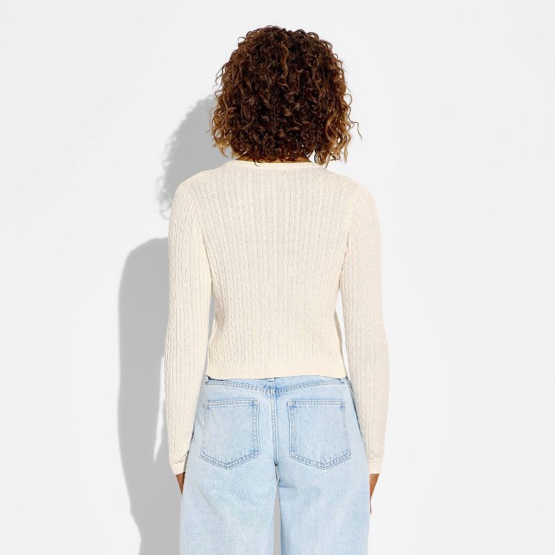 Women's Crewneck Baby Cable Cardigan - Wild Fable™ Cream M