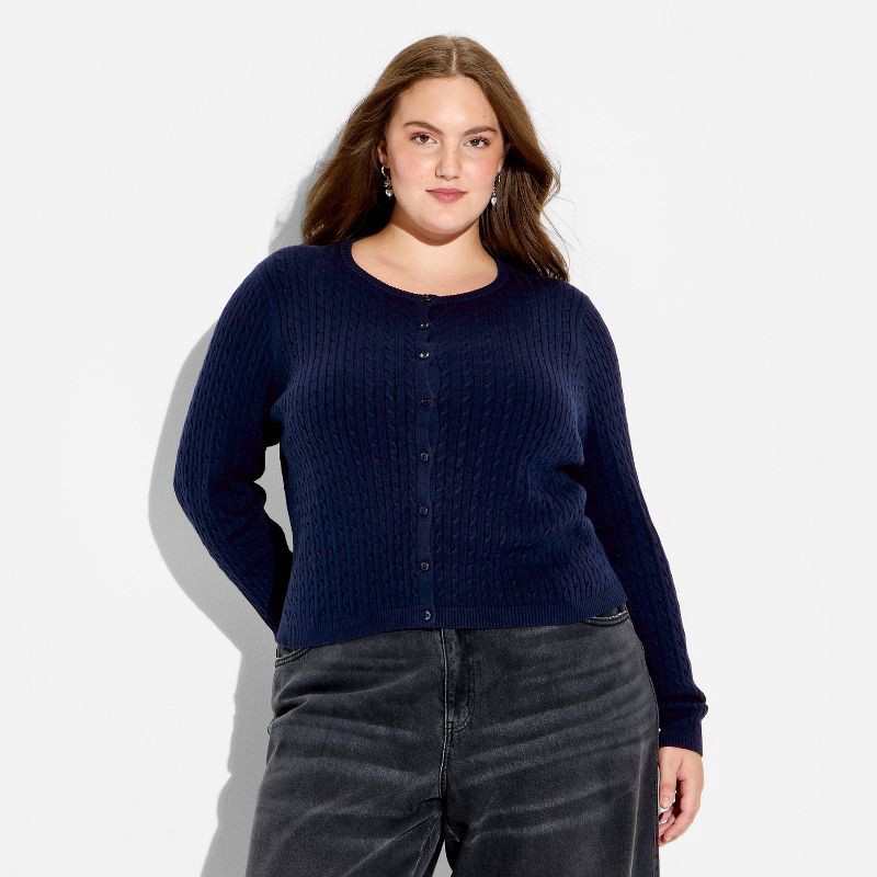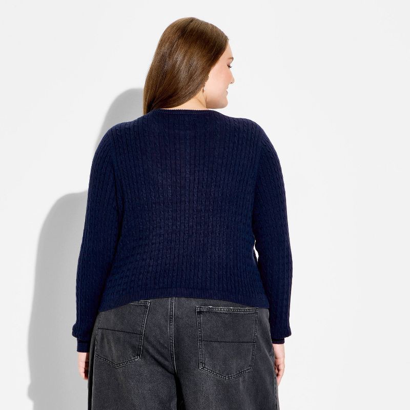 Women's Crewneck Baby Cable Cardigan - Wild Fable™ Navy Blue XXL