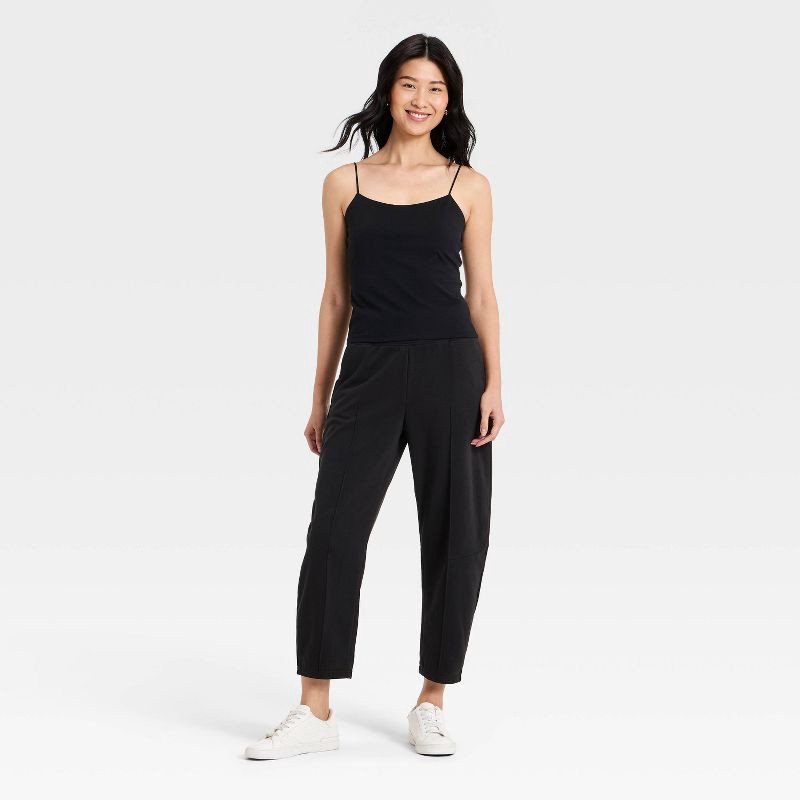 Women's Barrel Leg Crop Sweatpants with Moto Seasms Elastic and Scoop Pockets - A New Day™ Black XL