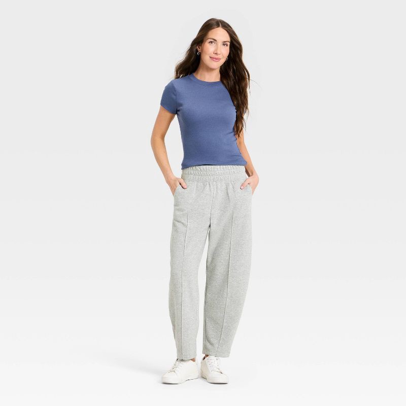 Bring a new style to your casualwear with these Barrel-Leg Crop Sweatpants with Moto Seams and Scoop Pockets from A New Day™. These high-waist pants are made from cotton-polyester blend fabric for all…