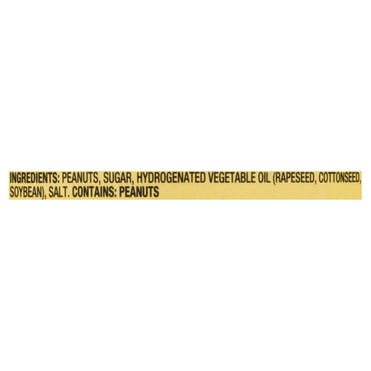 Peanuts, Sugar, Hydrogenated Vegetable Oil (Rapeseed, Cottonseed, Soybean), Salt.