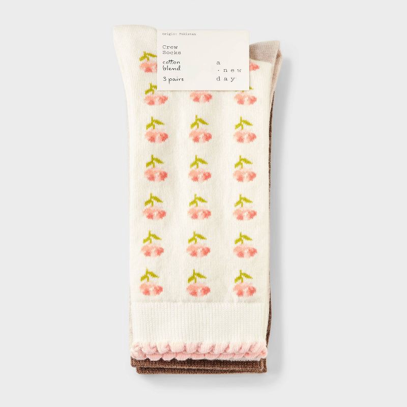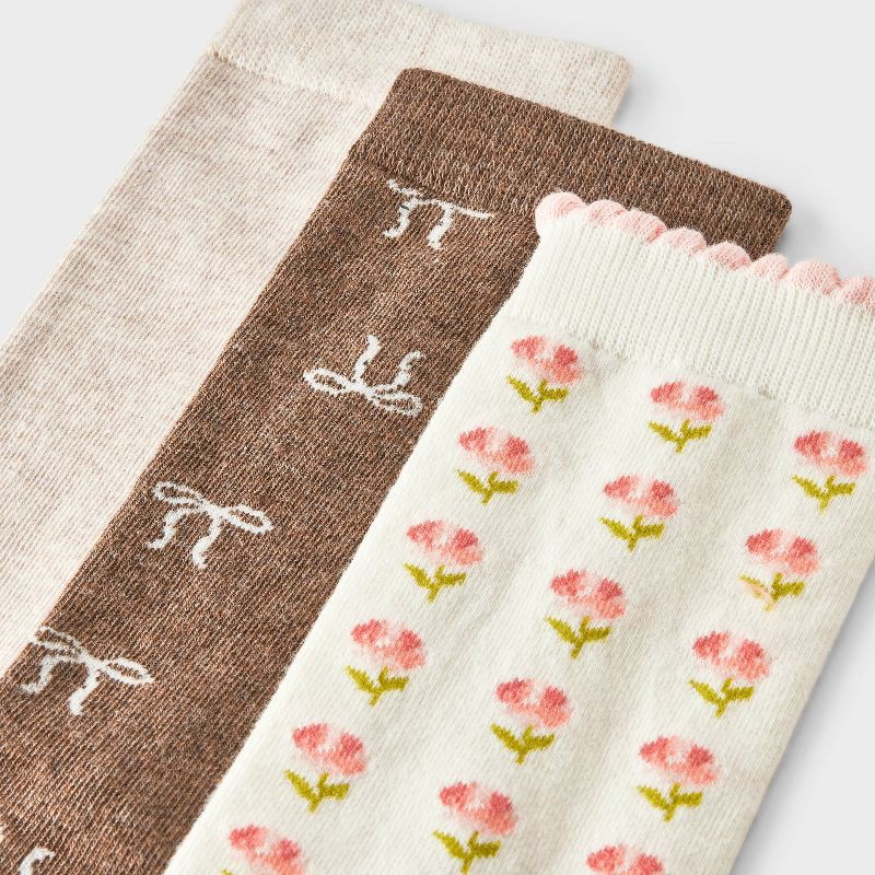 These Petite Blossoms Crew Socks from A New Day™ bring a dash of spring style to your sock drawer. This pack includes three pairs of crew socks — one brown pair with white bow print, one in sour cream…