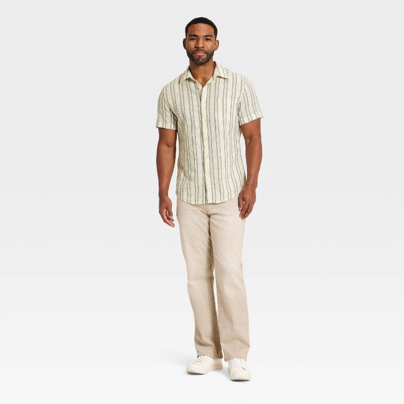 Men's Short Sleeve Camp Shirt - Goodfellow & Co™ Cream Striped M