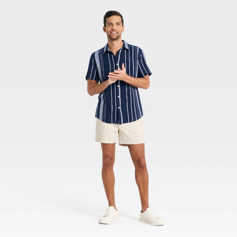 Men's Short Sleeve Camp Shirt - Goodfellow & Co™ Navy Blue Striped L