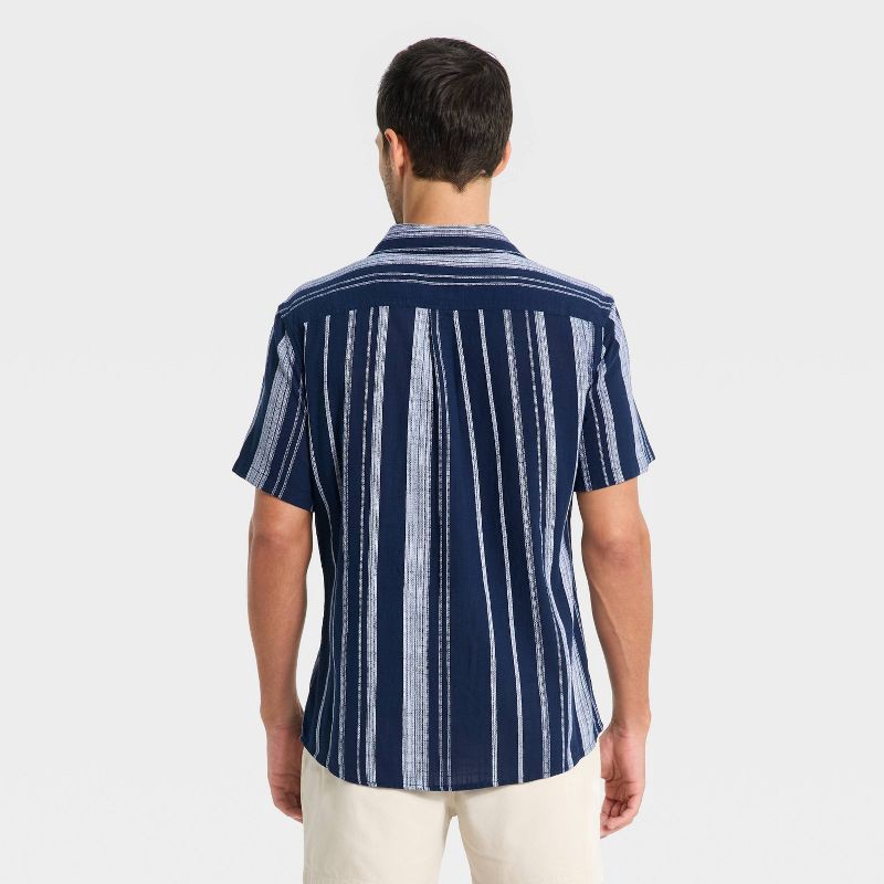 Men's Short Sleeve Camp Shirt - Goodfellow & Co™ Navy Blue Striped XXL