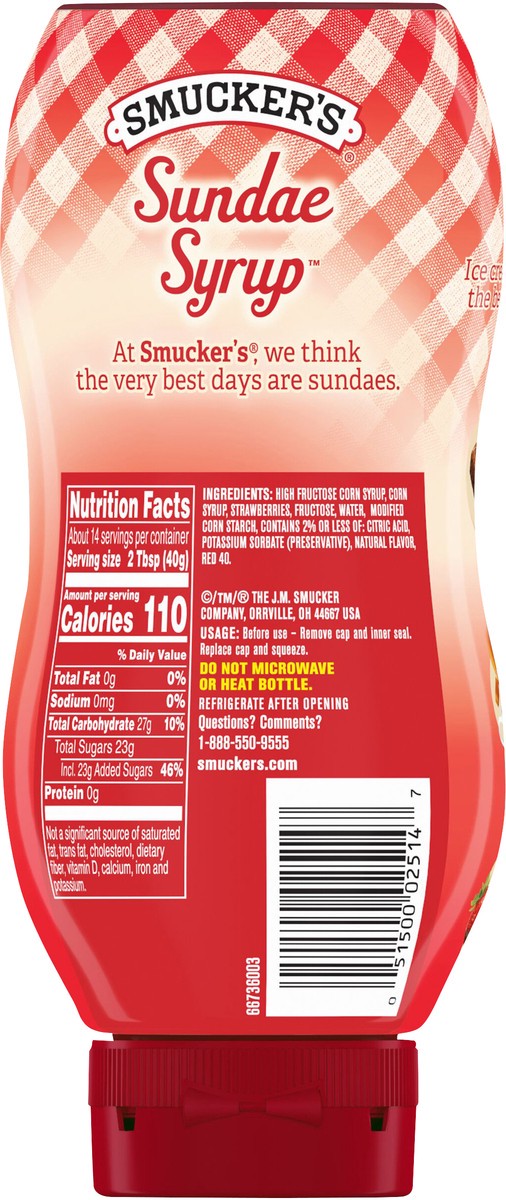 Smuckers Sundae Syrup Flavored Strawberry - 20 Oz