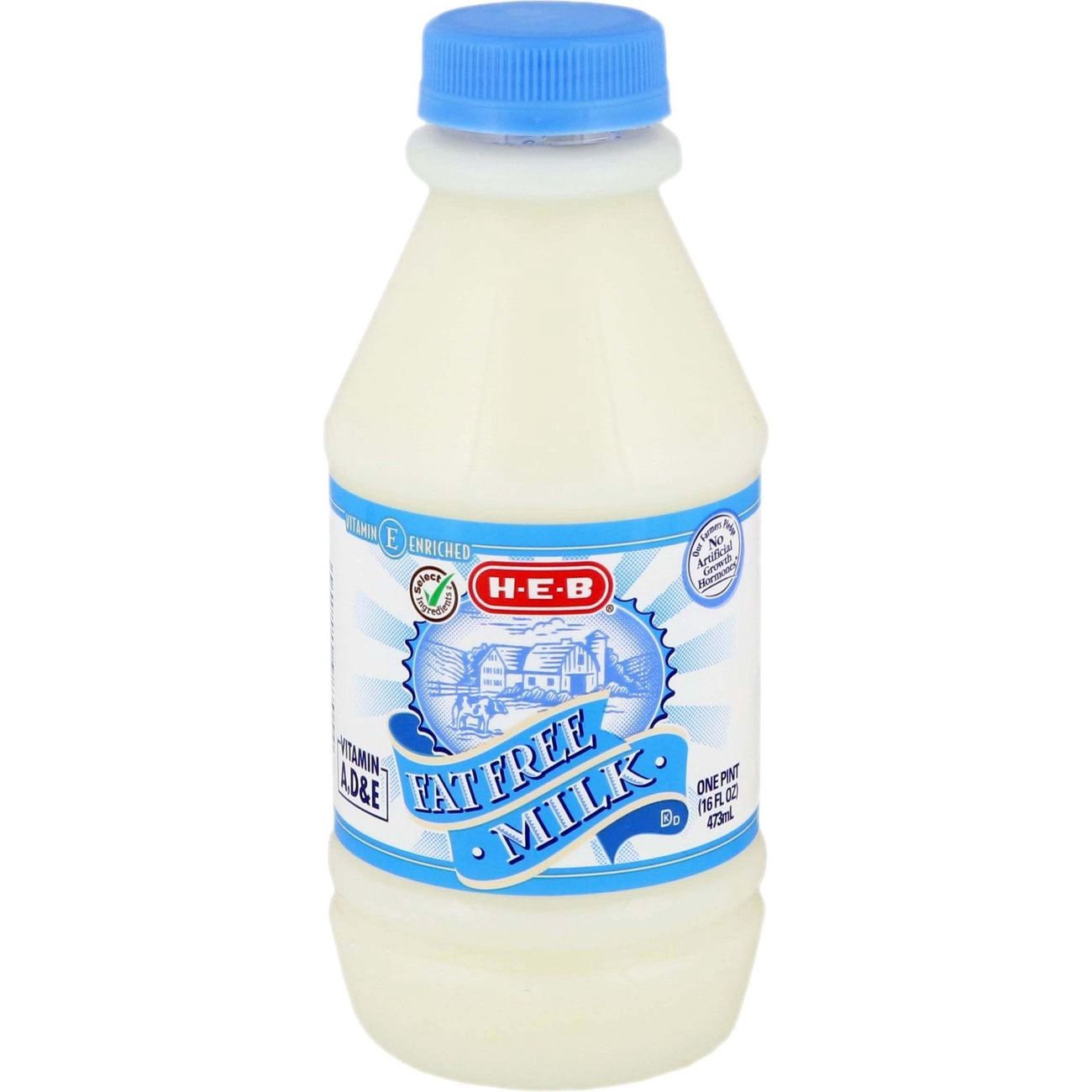 H-E-B fat-free milk is made by Texas farmers who pledge no artificial growth hormones (rBST).* Pick up an ice-cold pint and pour some onto cereal or into black coffee.• 1 pint of fat-free milk• Vitami…