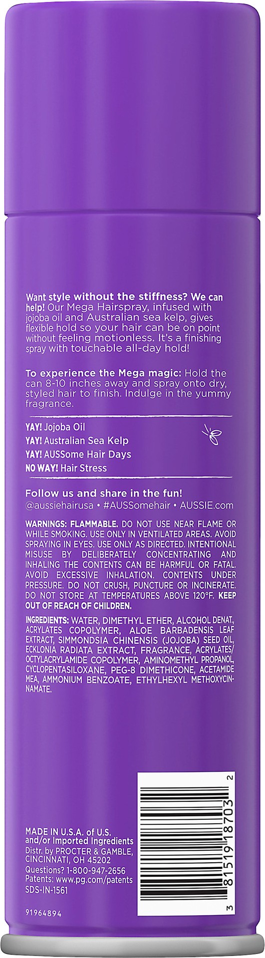 Aussie Hairspray Mega Kelp Flexible Hold With Jojoba Oil & Sea - 14 Oz