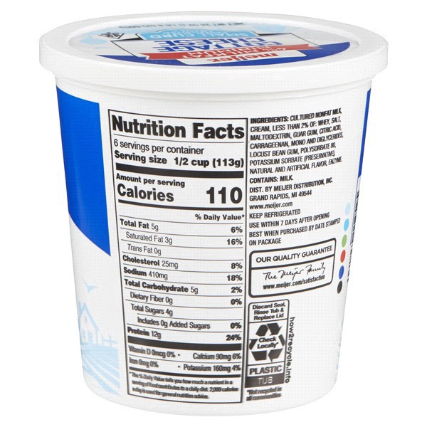 Equally good in your classic lasagna recipe as it is as a stand-alone snack, Meijer cottage cheese has 12 grams of protein per serving to fuel your day!