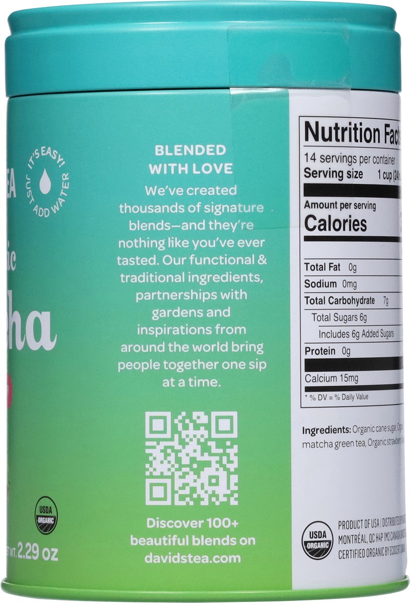DavidsTea Organic Strawberry Matcha Drink Mix 2.29 oz