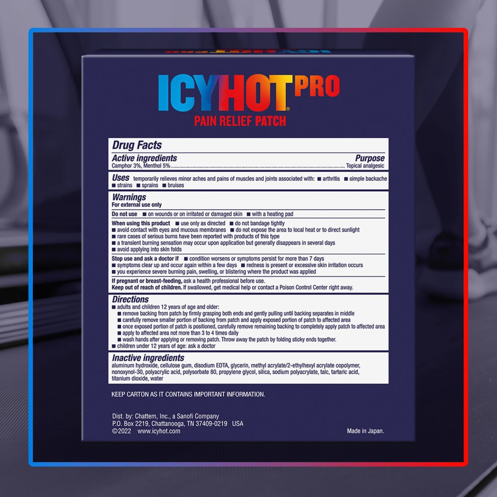 Icy to dull, hot to relax. Introducing Icy Hot Pro Pain Relief Patches, powerful pain-relieving patches designed to give you fast-acting, targeted relief for aching muscles and joints. The Icy Hot Pro…