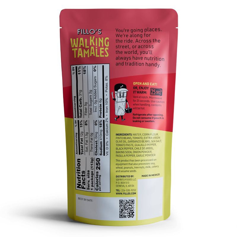 FILLO's Walking Tamales Bean Salsa Roja - 4oz