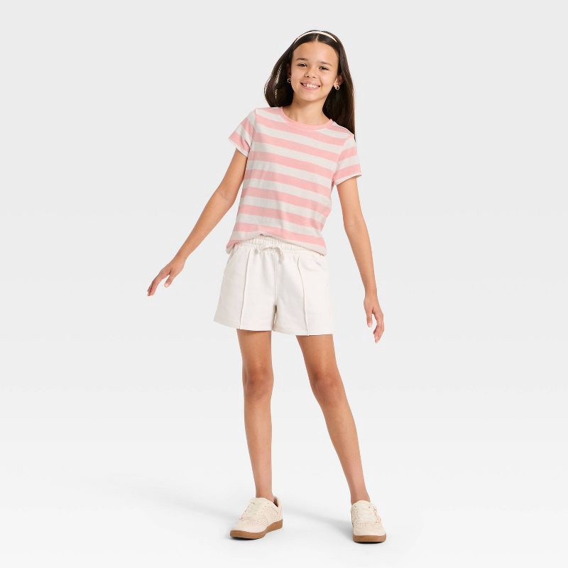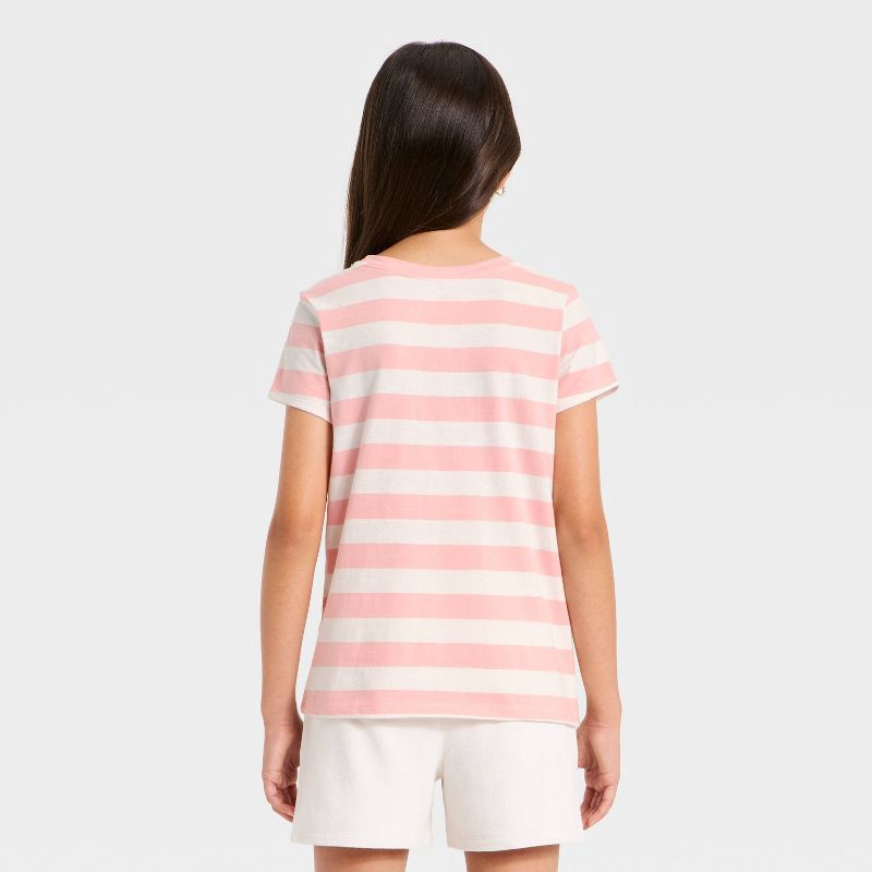 Girls' Short Sleeve Jersey Striped T-Shirt - Cat & Jack™ Peach Pink/Cream S