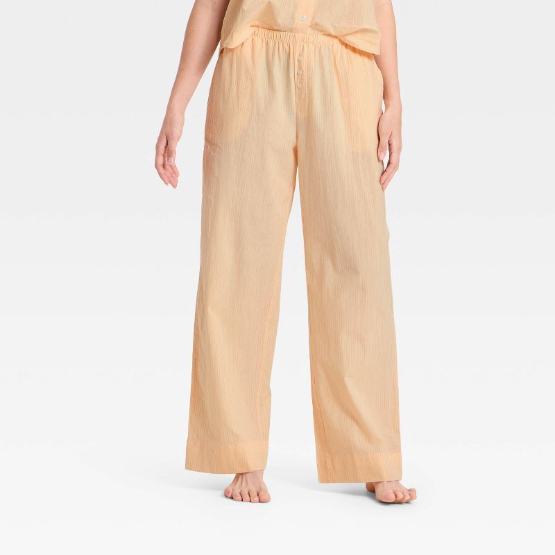 Women's Striped Cotton Blend Pajama Pants - Auden™ Peach Orange M