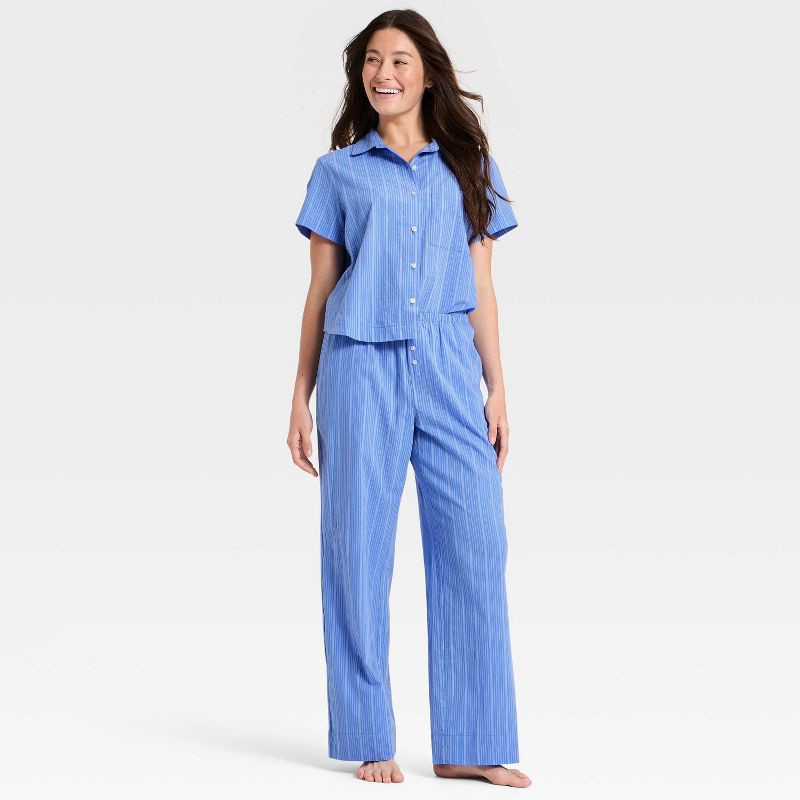 Women's Striped Cotton Blend Pajama Pants - Auden™ Blue L