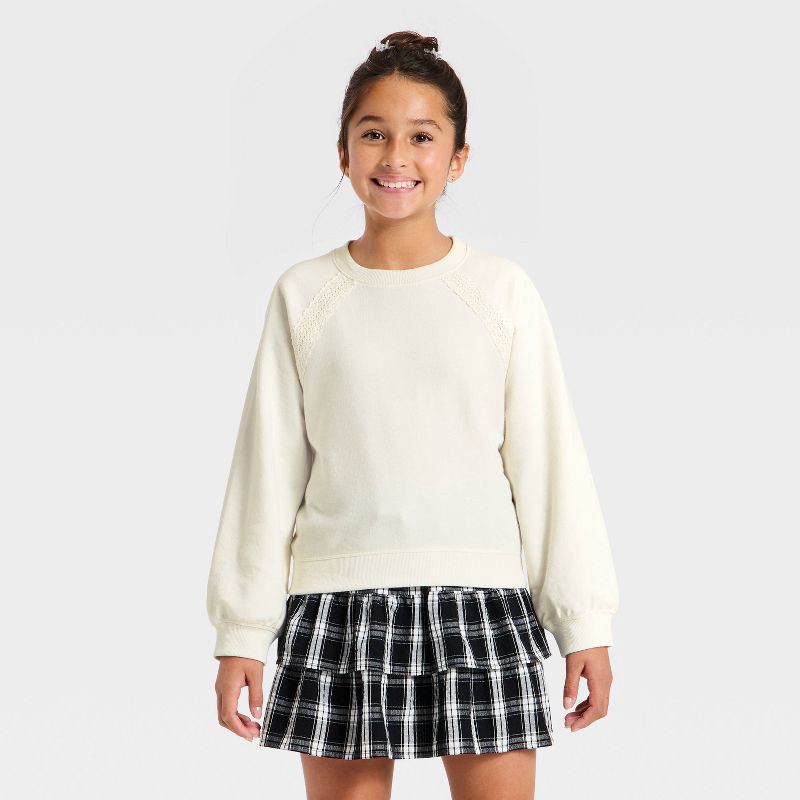 Girls' Lace Trim French Terry Pullover Sweatshirt - Cat & Jack™ Cream L