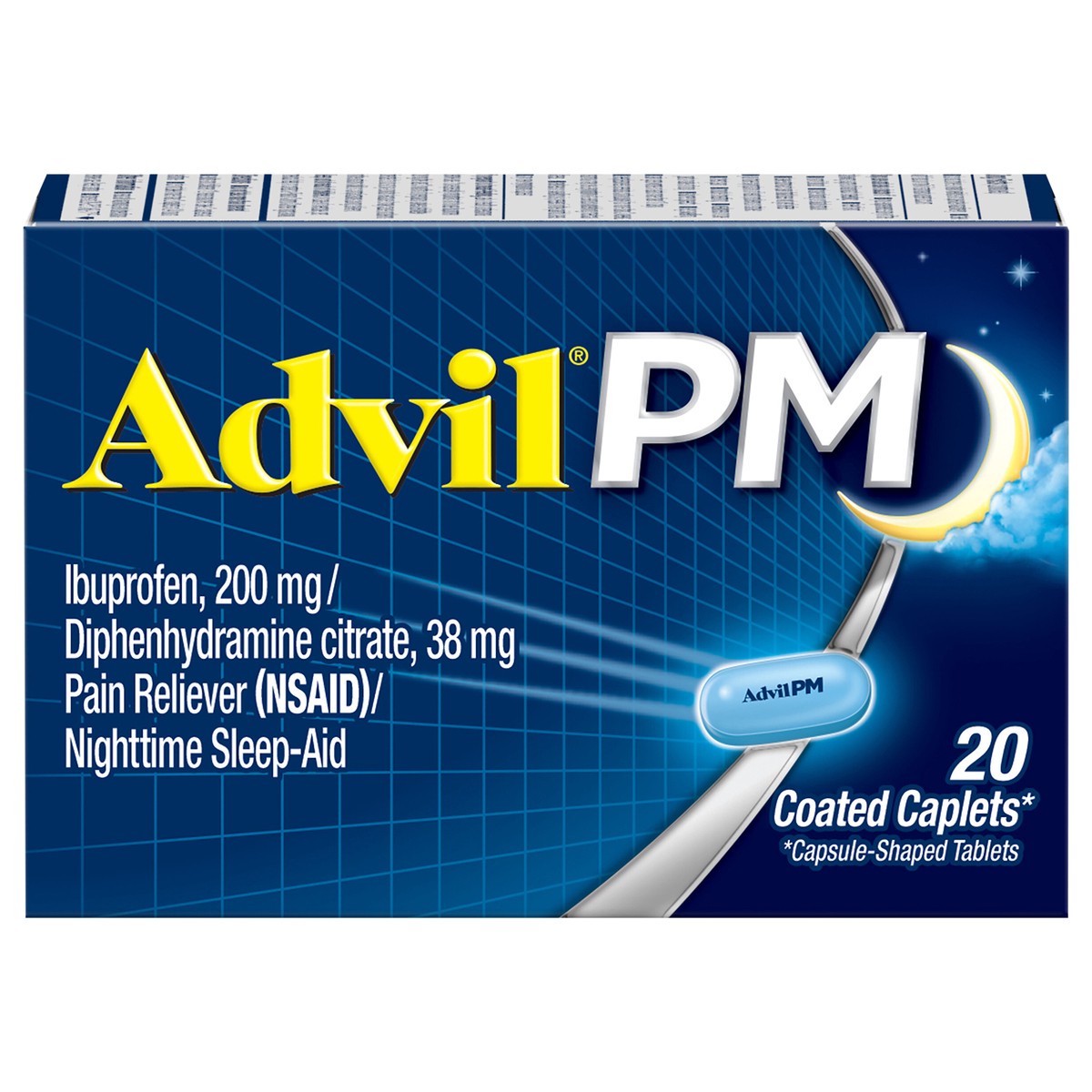 Active Ingredients: Diphenhydramine Citrate (38 mg), Nighttime Sleep-Aid; Ibuprofen (NSAID) (200 mg), Pain Reliever. Inactive Ingredients: Calcium Stearate, Carnauba Wax, Colloidal Silicon Dioxide, Co…