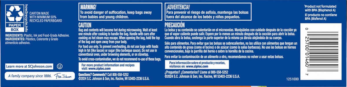 Ziploc Microwavable Steam Cooking Bags