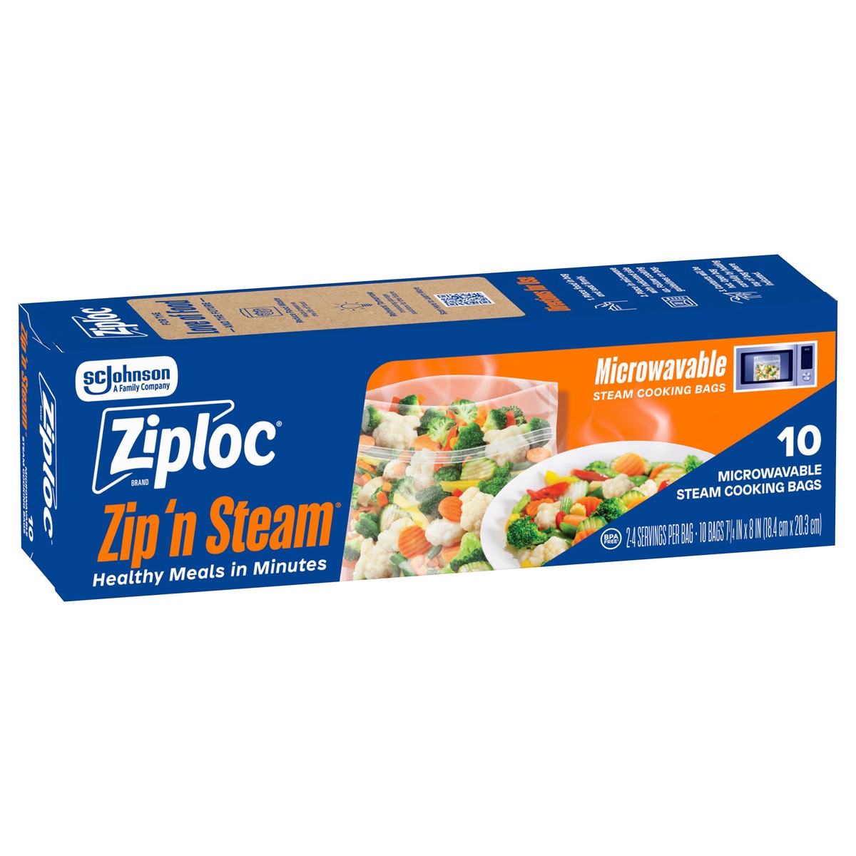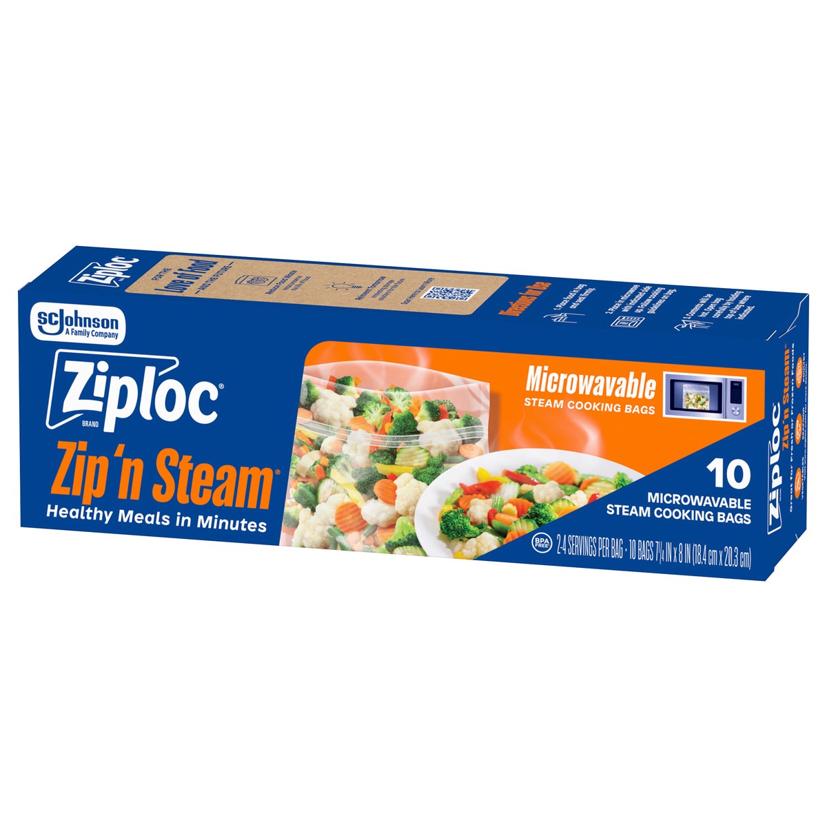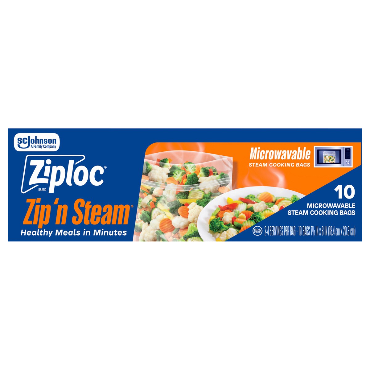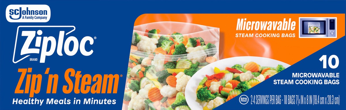 Ziploc Brand Zip’n Steam Food Steamer Bags, Seal Top Closure, 10 count