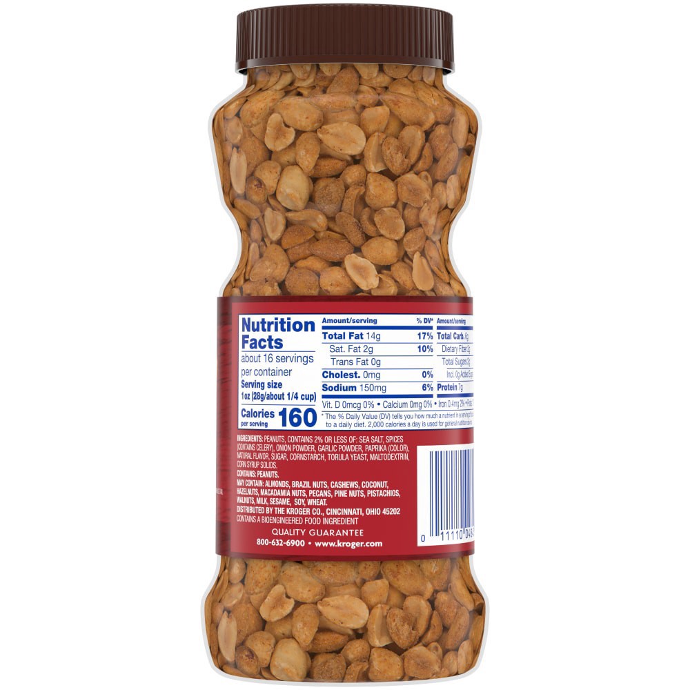 Ingredients: Peanuts, Contains 2% Or Less Of Sea Salt, Spices (Contains Celery), Onion Powder, Garlic Powder, Paprika (Color), Natural Flavor, Sugar, Cornstarch, Torula Yeast, Maltodextrin, Corn Syrup…