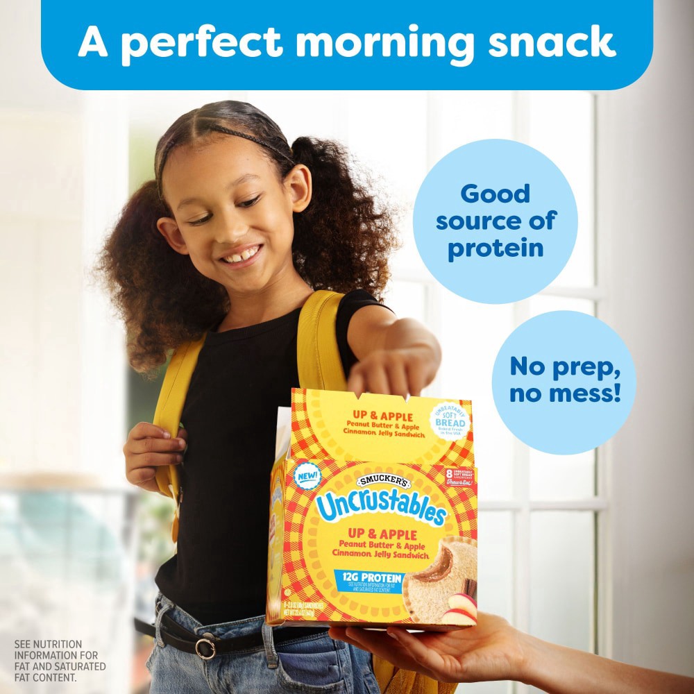 Kick-start the day with a delicious and easy source of protein: Snack on Smucker''s Uncrustables Up & Apple wheat bread frozen sandwiches. With tastes and textures you''ll love, they''re the perfect p…