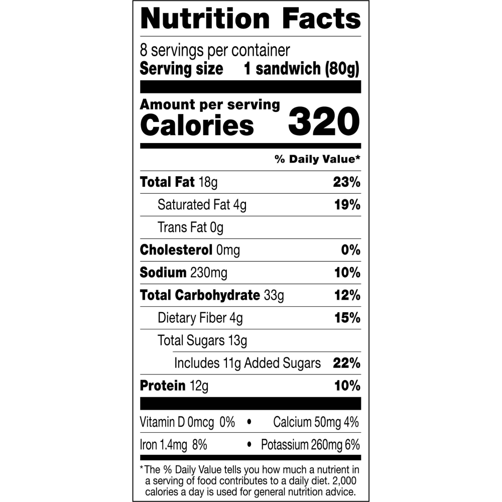 Peanut Butter: Peanuts, Contains 2% or Less of: Fully Hydrogenated Vegetable Oils (Rapeseed and Soybean), Mono and Diglycerides, Molasses, Sugar, Salt, Bread: Unbleached Whole Wheat Flour, Enriched Un…