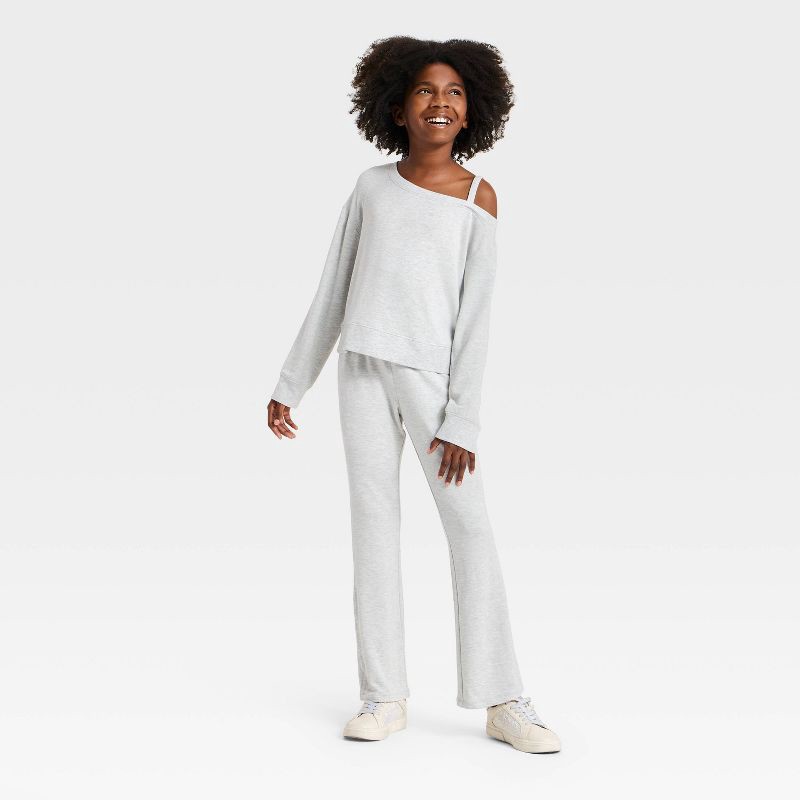 Girls' Modal French Terry Asymmetrical Pullover Sweatshirts - All In Motion™ Heather Gray L