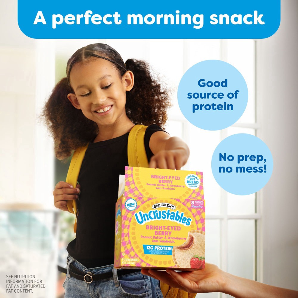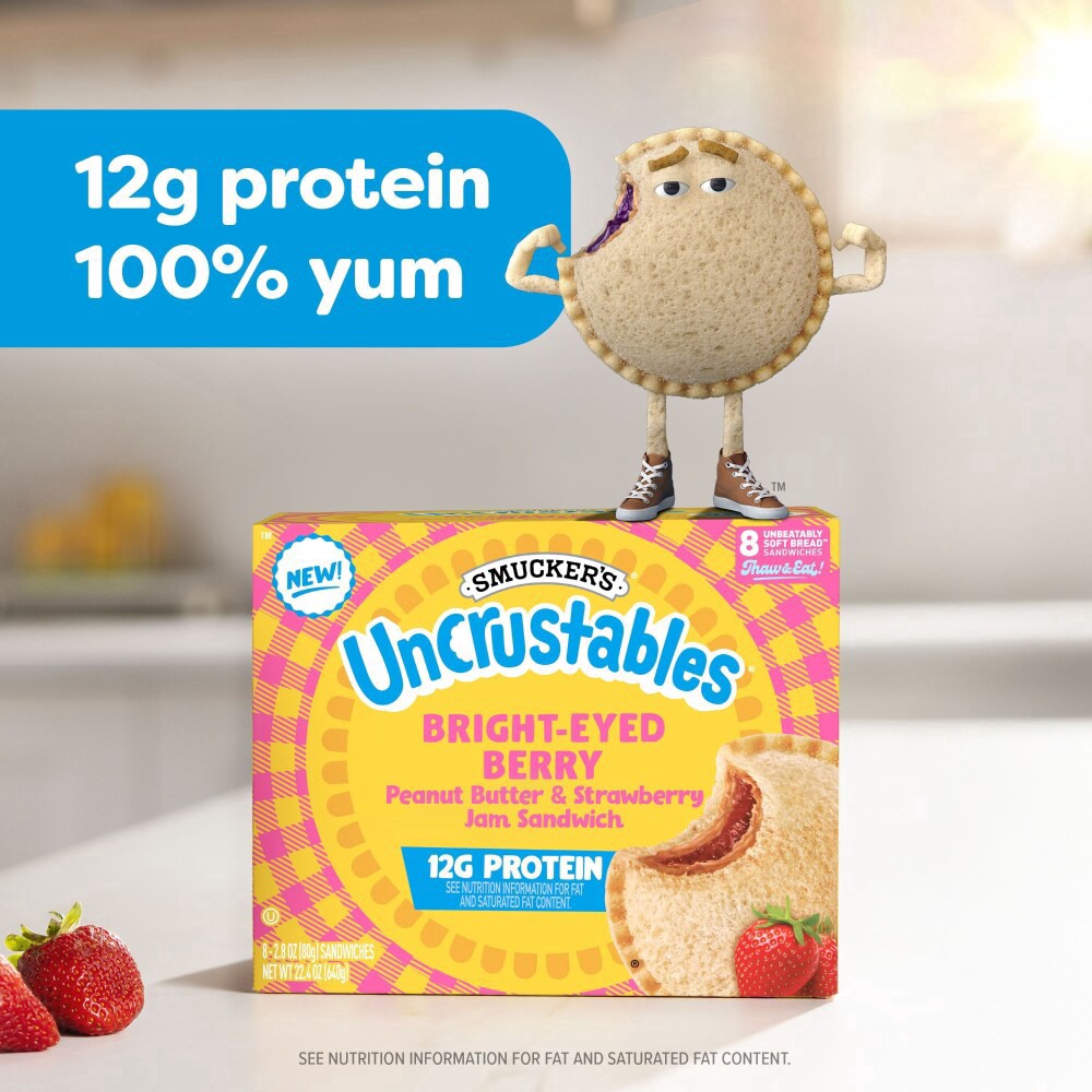 Kick-start the day with a delicious and easy source of protein: Snack on Smucker''s Uncrustables Bright-Eyed Berry wheat bread frozen sandwiches. With tastes and textures you'll love, they're the perf…