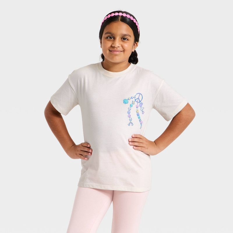 Girls' Short Sleeve Oversized 'Charm' Graphic T-Shirt - Cat & Jack™ Cream S