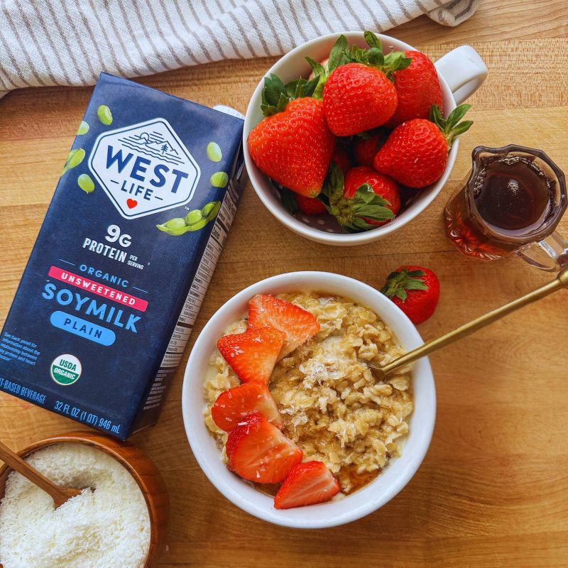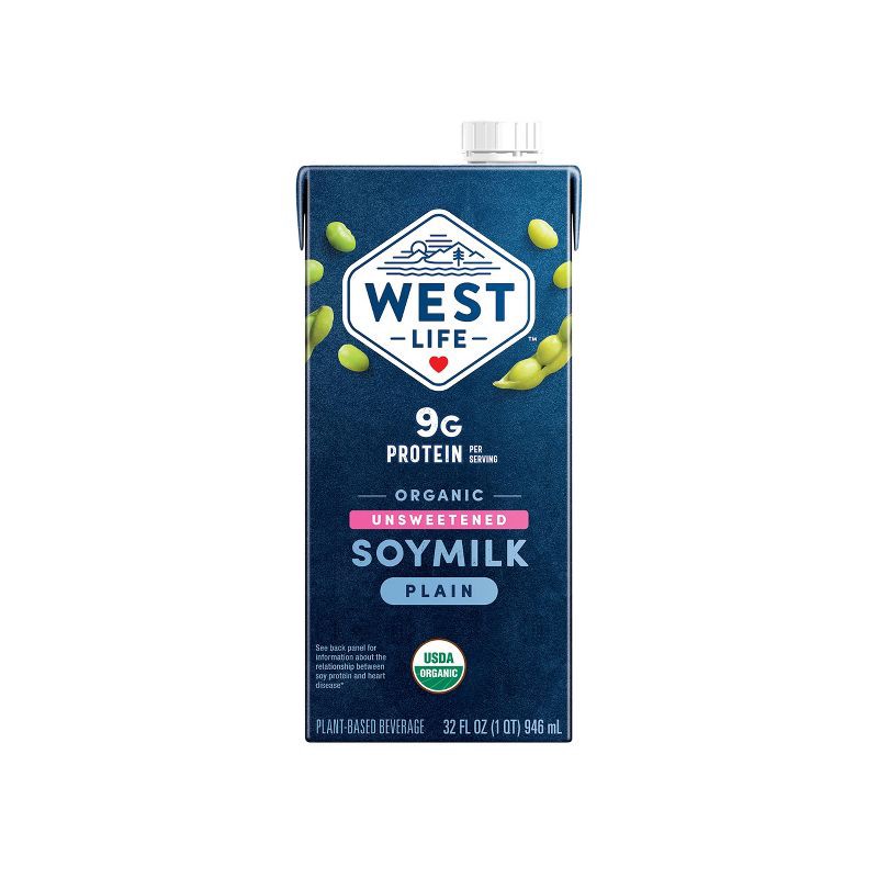 - EASY TO USE: West Life Unsweetened Plain soymilk is deliciously satisfying by the glass, over cereal, or a good protein addition to a smoothie!