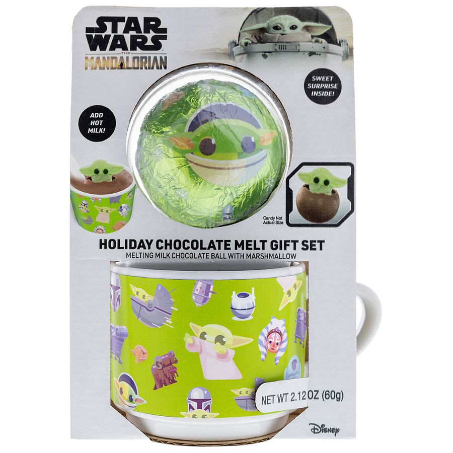 Experience delicious popculture fun with this Star Warsthemed magic chocolate melt mug set. Coming with an adorable Baby Yoda mug and a delicious melting milk chocolate ball containing a marshmallow c…