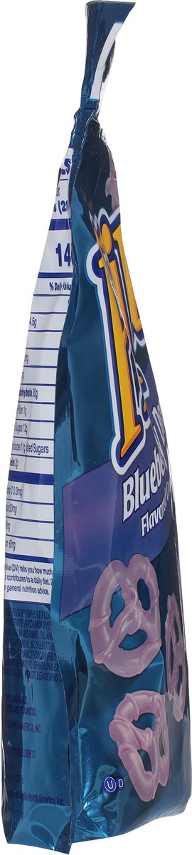 Crispy pretzels wrapped in blueberry flavored confection for a sweet snack on the go