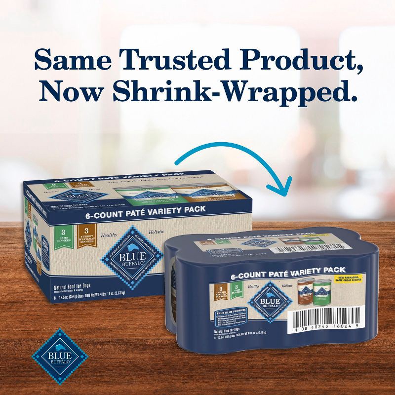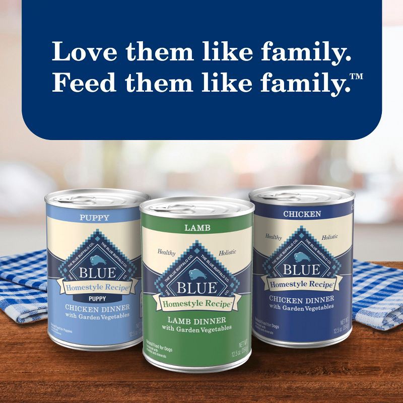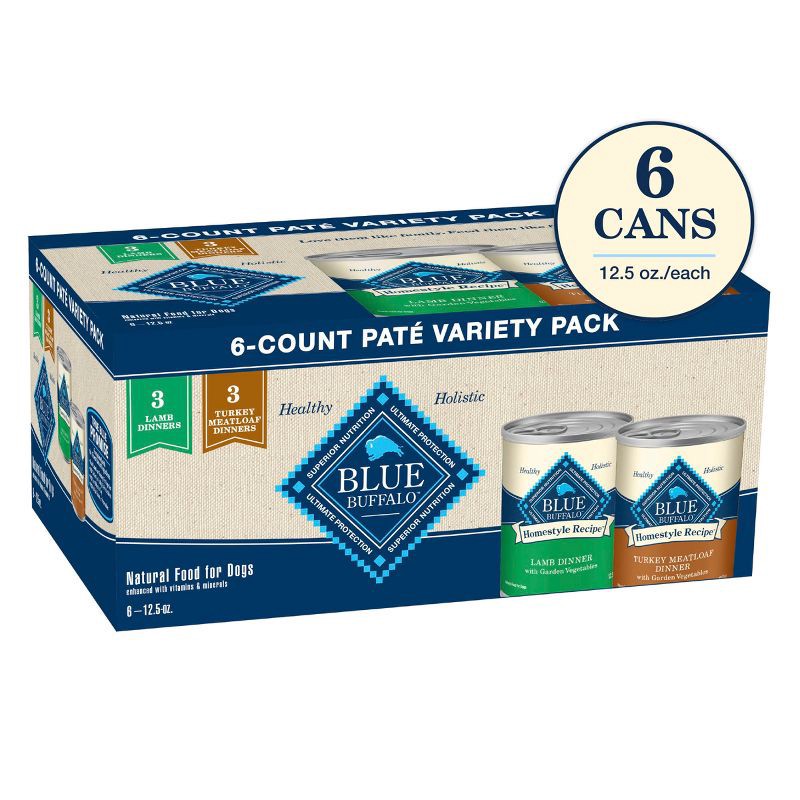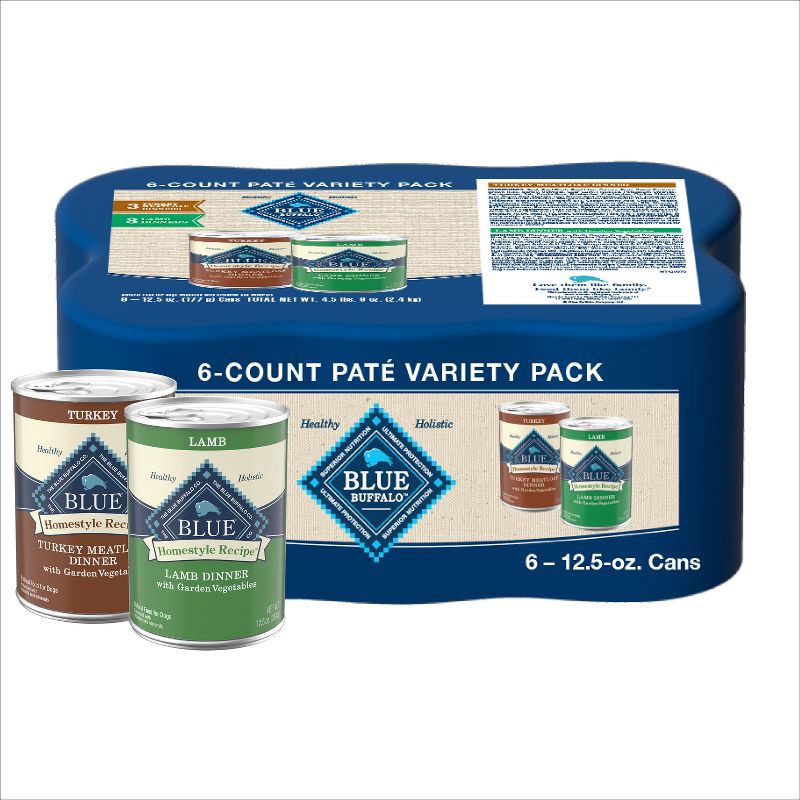 - PACKAGING MAY VARY: Contains Six (6) 12.5-oz cans of BLUE Homestyle Recipe Natural Adult Wet Dog Food, Turkey and Lamb Dinner Variety Pack (3 of Each)