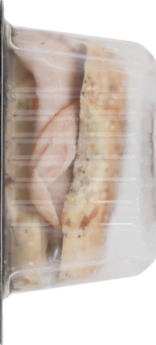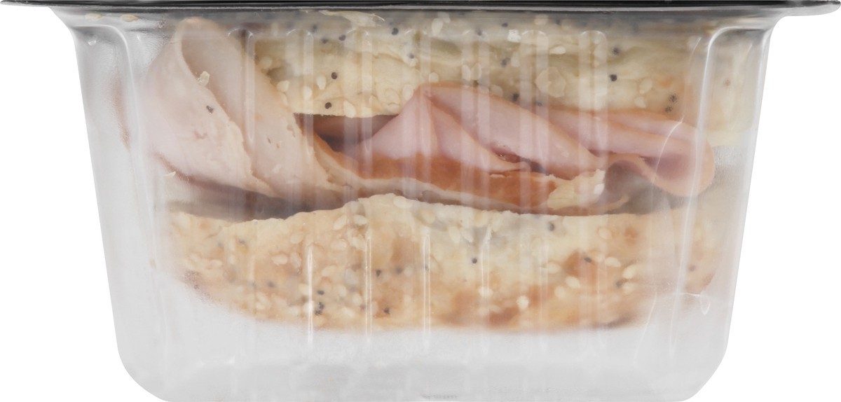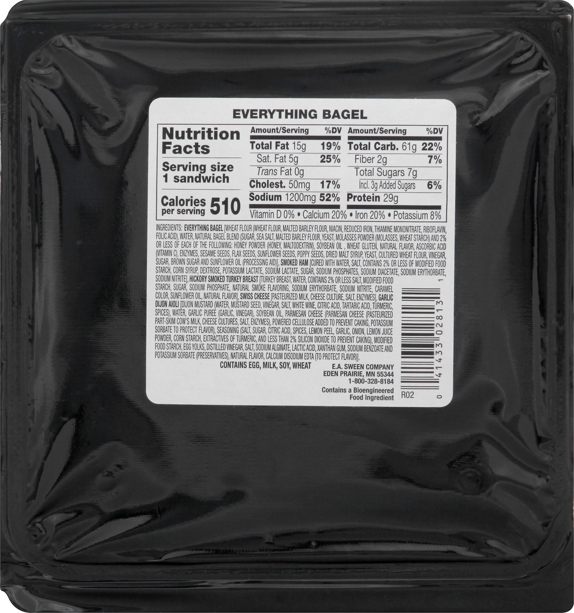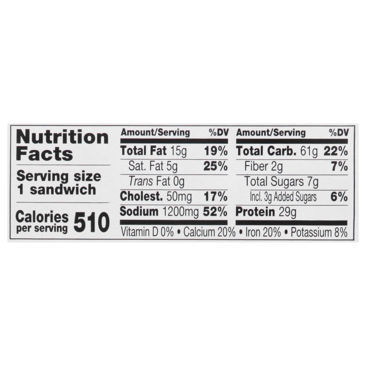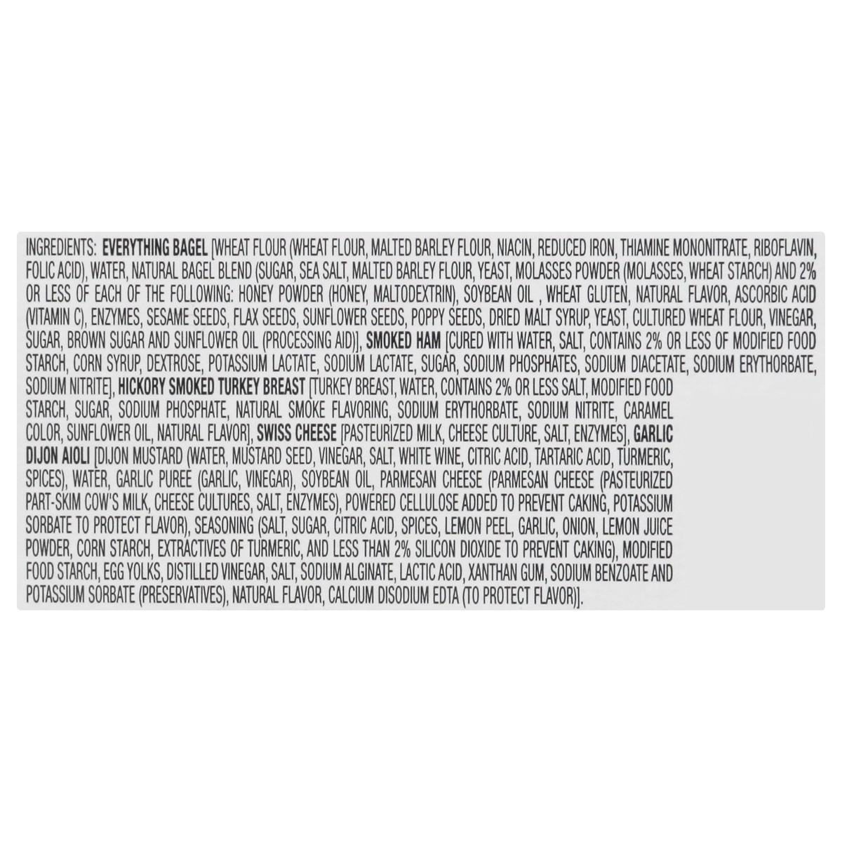 With smoked ham, smoked white turkey, swiss cheese & garlic dijon aioli. 29 g protein. 510 calories. Contains a bioengineered food ingredients. US inspected and passed by department of agriculture.