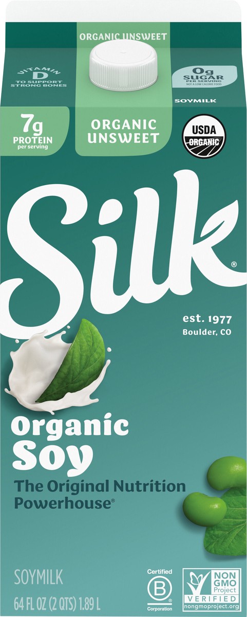 Treat yourself with Silk Unsweet Organic Soymilk. Made with whole harvested soybeans grown by Mother Nature, this organic lactose free milk is the Original Nutrition Powerhouse. Enjoy all of the taste…