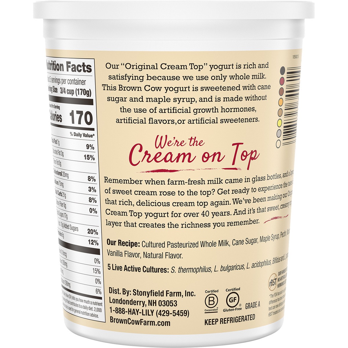 Brown Cow Cream Top Vanilla Whole Milk Yogurt 32 oz. Carton