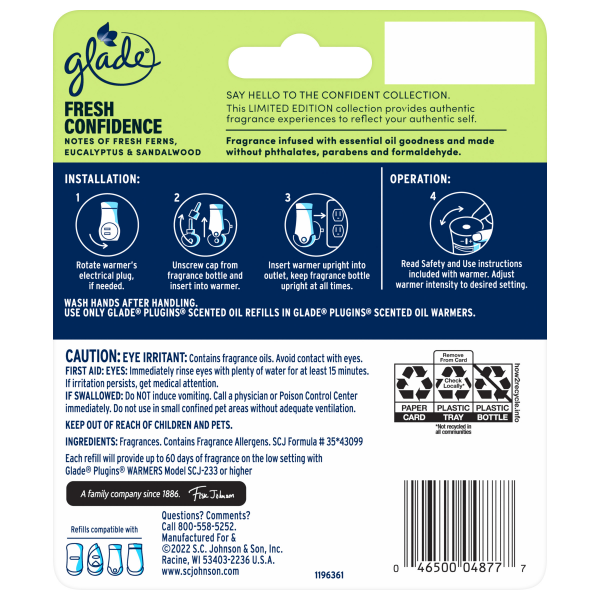Glade PlugIns Scented Oil Air Freshener, Fresh Confidence Limited Edition, 1.34 oz Total, 2 Refills